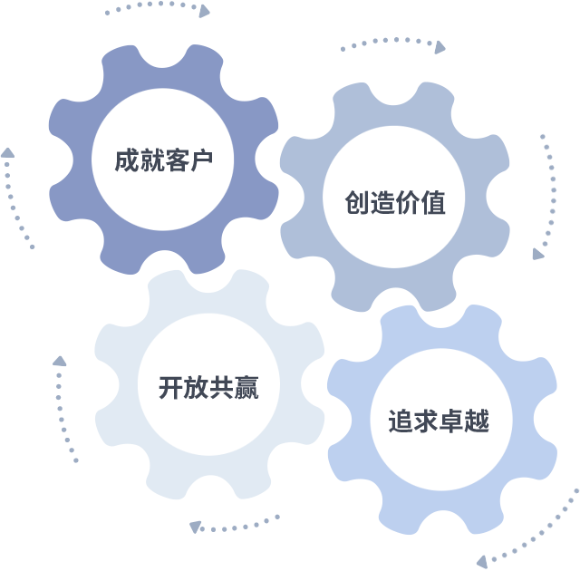 成就客户是一切决策的出发点,创造价值是衡量所有工作的标准,追求卓越是球信网做事做人的态度,开放共赢是球信网的格局也是最终的结果。价值观的齿轮环环相扣,推动着组织里的每个人不断向前。